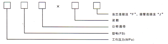 表示:工作壓力為0.6MPa,通徑DN=200mm,波數(shù)為12,接管連接的復式拉桿波紋補償器。